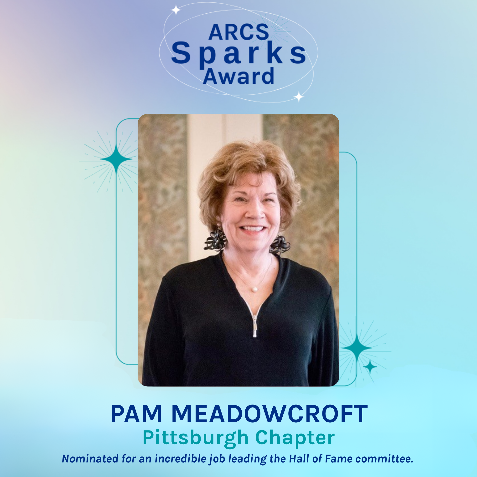 The ARCS Sparks Award is meant to honor ARCS members who exhibit small, everyday acts of kindness or displays of leadership or commitment to ARCS Foundation within the chapter or at the national level.