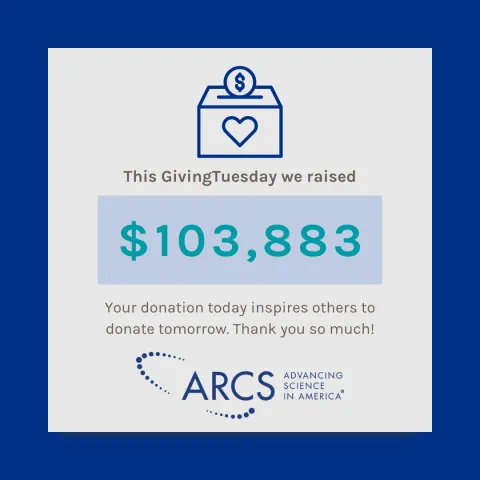 Thank you to the sixty-three ARCS Members, twenty ARCS Scholars and Scholar Alumni, and ninteen Friends of ARCS for helping us reach $103,883! This #GivingTuesday campaign featured a significant increase in participation and donations.