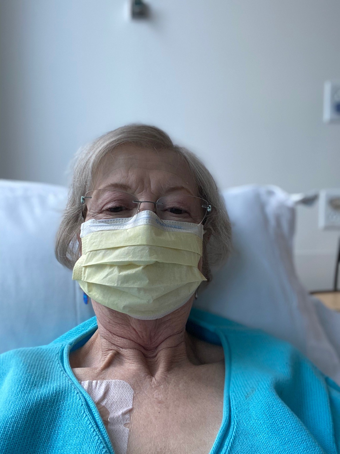 Jane receives an infusion as part of her breast cancer therapy at the OHSU Knight Cancer Institute. Photo Courtesy: Jane Gray |