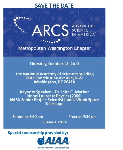 ARCS/MWC is honored to welcome John Mather, PhD as the 2017 Keynote Speaker. The proceedings will be held in The National Academy of Sciences Great Hall and Auditorium, Washington, D.C. Dr. John C. Mather is a Senior Astrophysicist in the Observational Cosmology Laboratory located at NASA’s Goddard Space Flight Center, Greenbelt, MD. He is also the Senior Project Scientist on the James Webb Space Telescope (JWST). He received a bachelor’s degree with Highest Honors in physics from Swarthmore College in Pennsylvania, and obtained a doctorate in physics on Cosmic Microwave Background Radiation from the University of California, Berkeley that involved building a balloon-borne far infrared interferometer. As a National Research Council postdoctoral fellow at the Goddard Institute for Space Studies, New York City, he led efforts to propose the Cosmic Background Explorer mission (1974-76).  He also built a microwave receiver, which was tested at the McDonald Observatory in Texas and the Navy Maryland Point observatory, that successfully observed SiO maser emission at 43 GHz, which had never been seen before. In 1976 he joined the Goddard Space Flight Center team as a Study Scientist (1976-88), Project Scientist (1988-98), and also the Principal Investigator for the Far Infrared Absolute Spectrophotometer (FIRAS) on the Cosmic Background Explorer (COBE) working with Rainer Weiss, Michael Hauser and George Smoot. Dr. Mather and the COBE team showed that the cosmic microwave background radiation has a blackbody spectrum within 50 parts per million (ppm), confirming the Big Bang theory to extraordinary accuracy. After COBE Dr. Mather’s research focused on developing new mission concepts, and currently the James Webb Space Telescope.